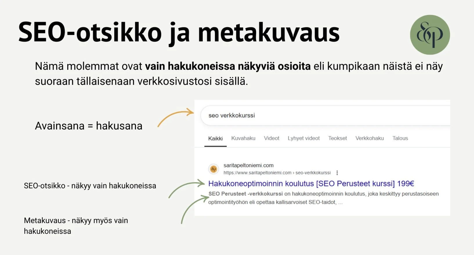 Esimerkki SEO-otsikosta ja metakuvauksesta